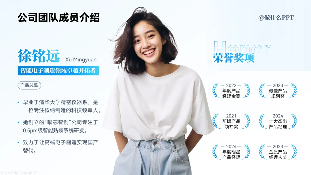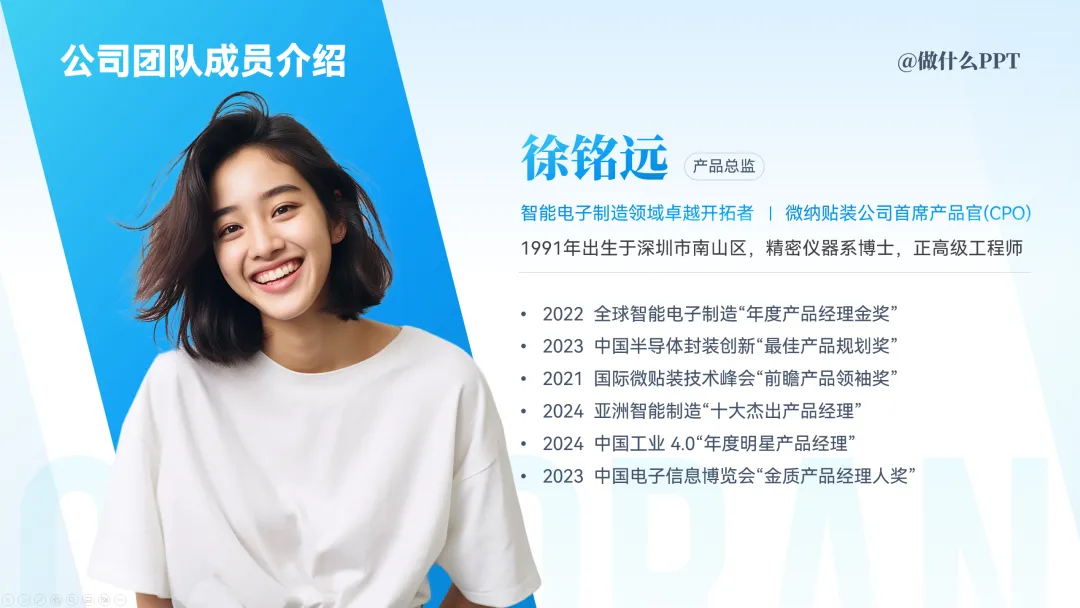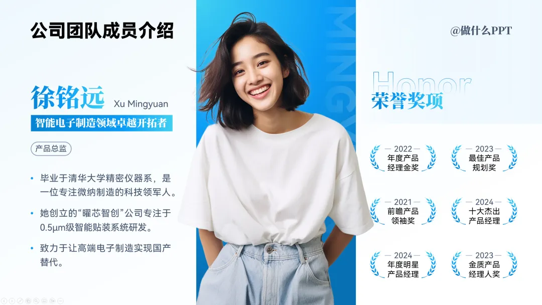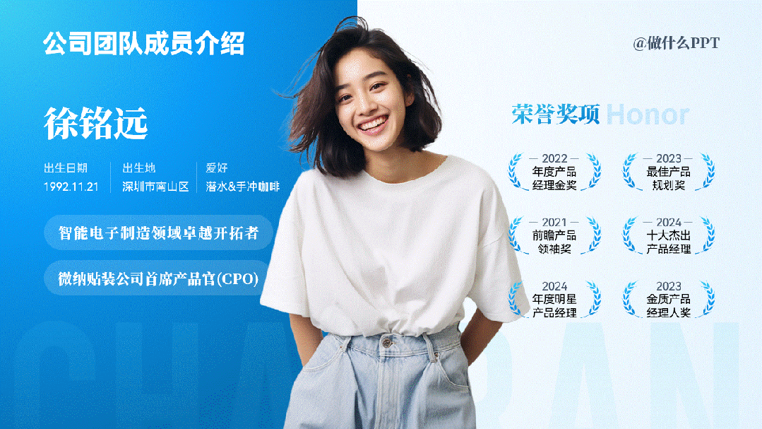 如果你现在要给陈丽君做一页人物介绍PPT却无从下手,就可以从以上模板中挑选一页直接套用。