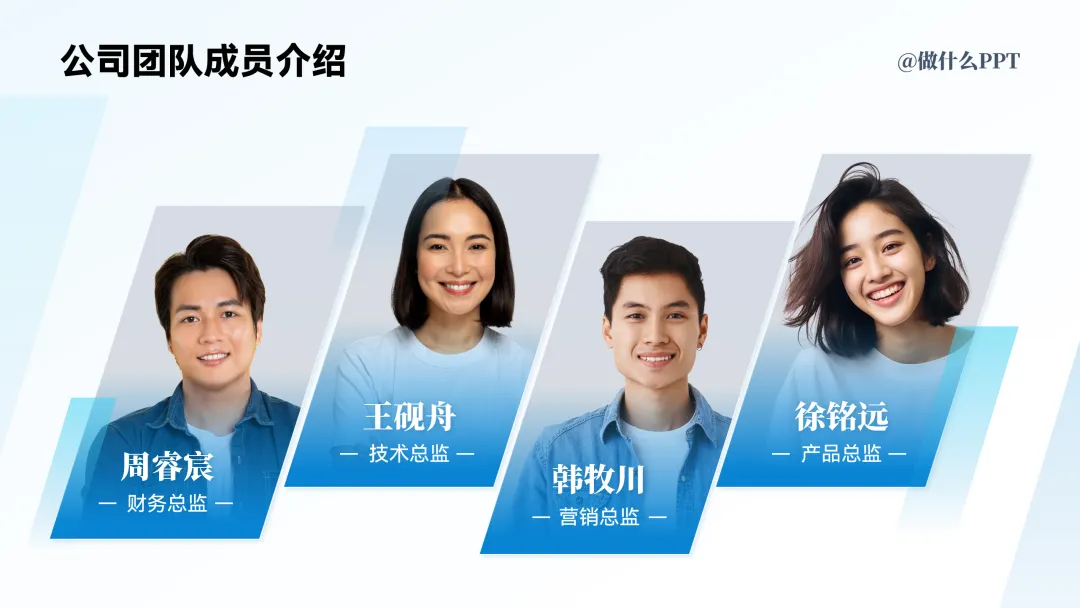 如果你需要做一个团队成员的整体介绍,但是又觉得这样横平竖直的版式很无趣。