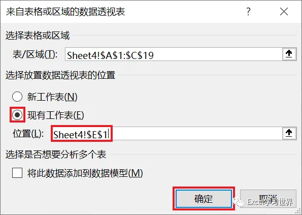 2. 在弹出的对话框中选择“现有工作表”及所需上传至的位置 --> 点击“确定”