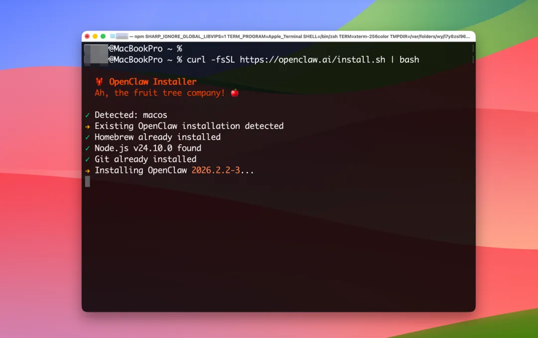 curl -fsSL https://openclaw.ai/install.sh | bash