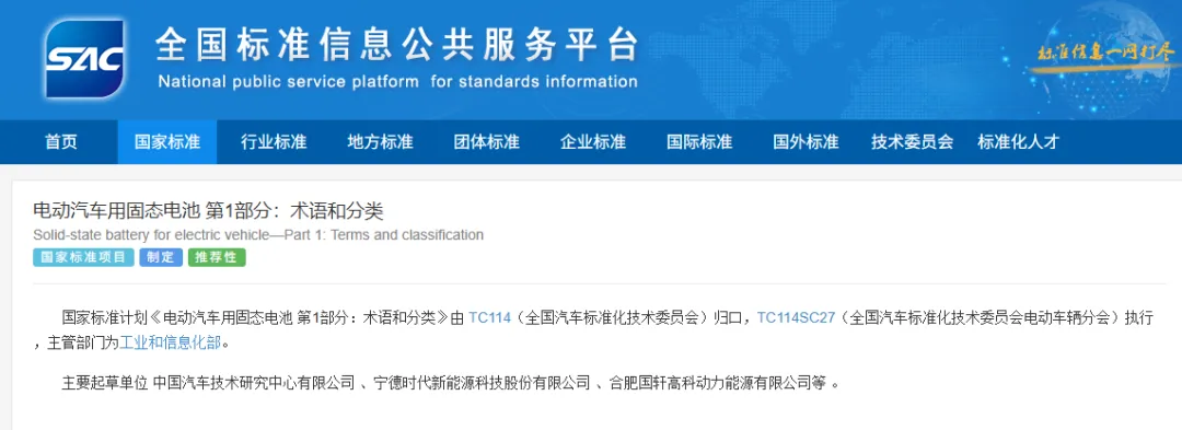 这里要划一个重点,那就是国际上尚无固态电池相关标准,而我国的国标同步制定了外文版本。