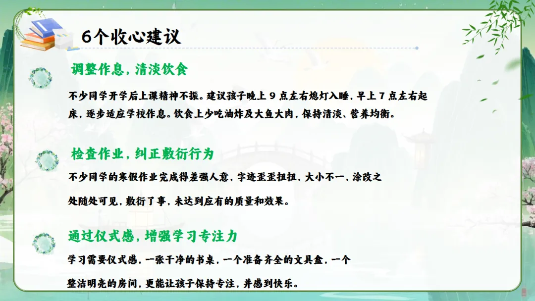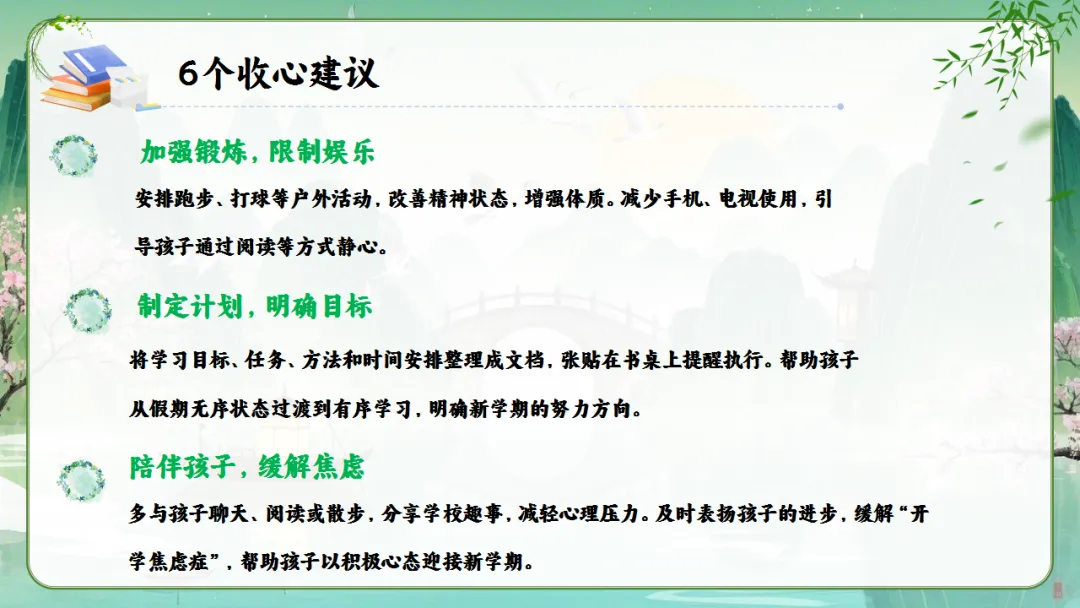 一、春季开学收心建议