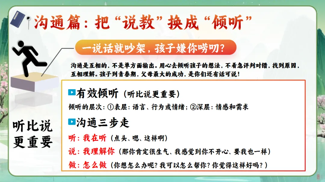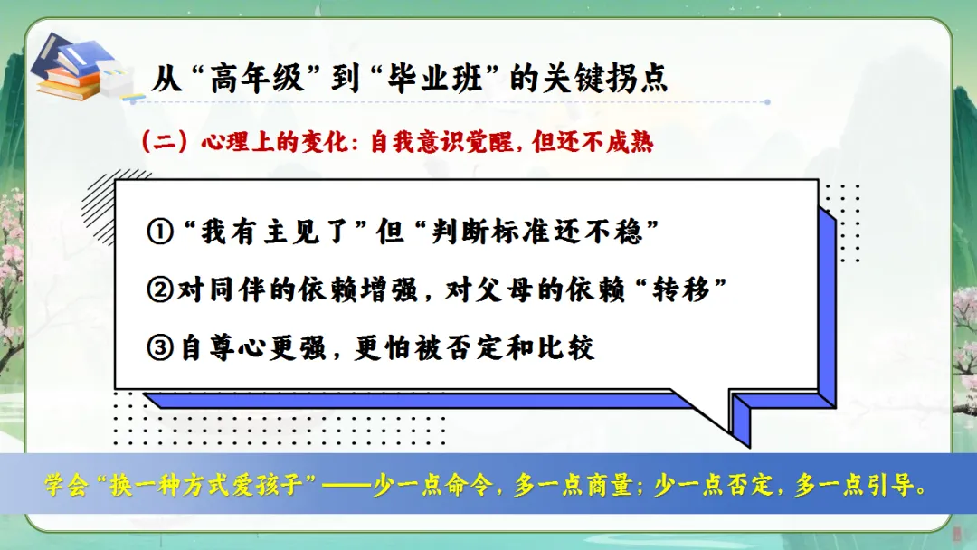 心理在成熟:自我意识增强,但还不稳定。我们要学会“换一种方式爱孩子”——少命令,多商量;少否定,多引导。