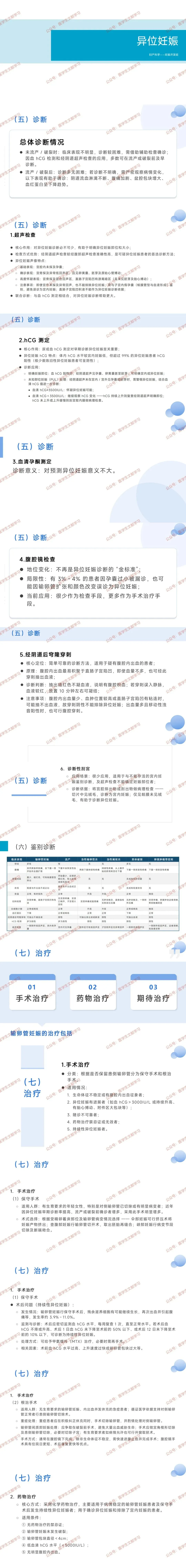 - 治疗原则:确诊后先保证患者生命安全,个体化处理异位妊娠,改善宫内妊娠预后,术后注意围手术期及孕期管理