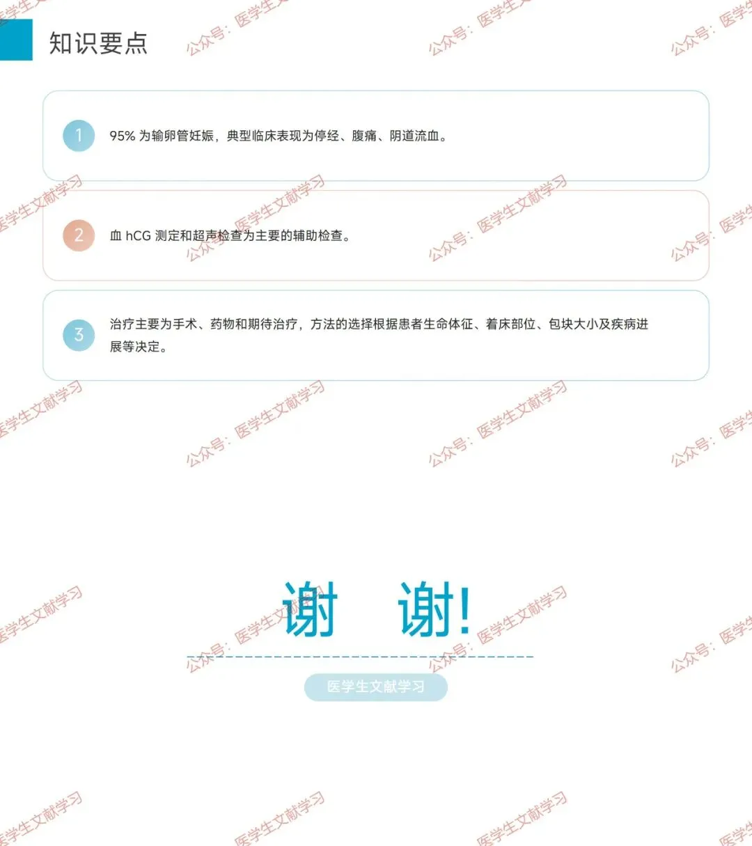 - 治疗监护:用超声和血 hCG 严密监护,关注病情变化