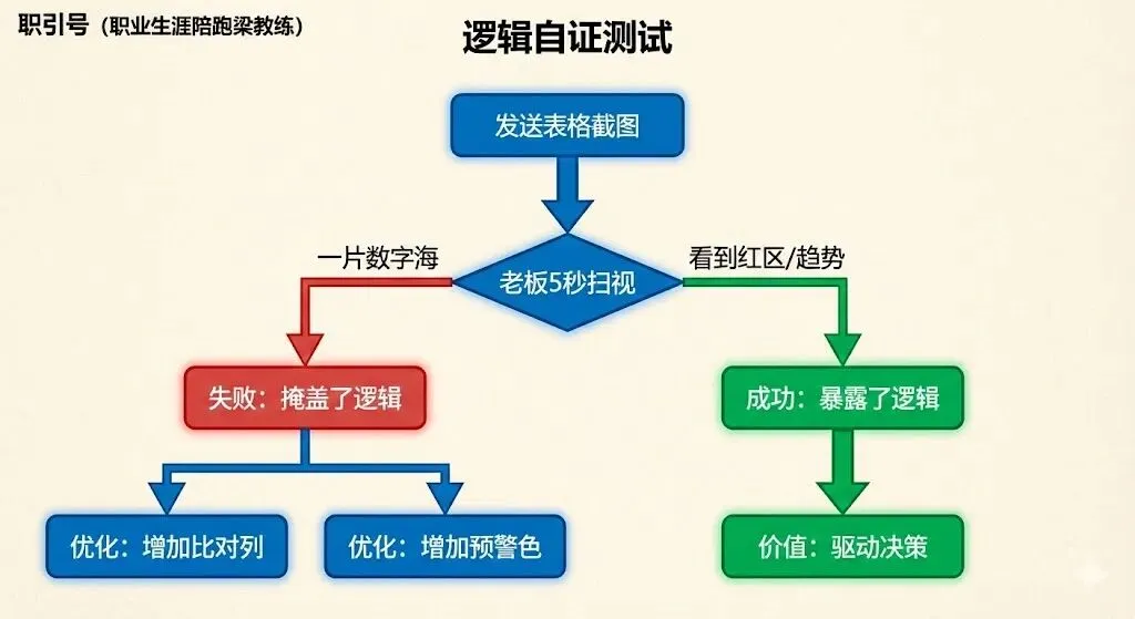 ❌失败:老板回“电话解释一下”。说明你的表格没有逻辑自证能力。