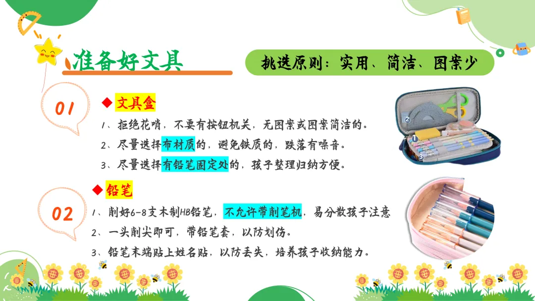 第二部分新学期准备,不仅有孩子的身心调适方法,还整理了文具、生活用品的准备清单和学校违禁品须知,细致到铅笔、书包的挑选原则,帮家长避坑;