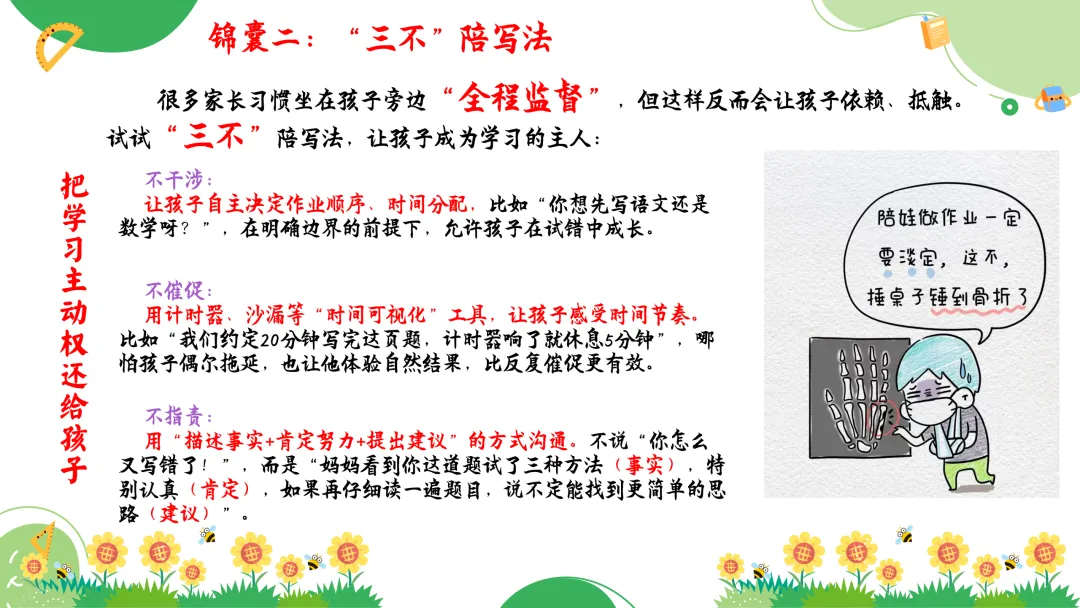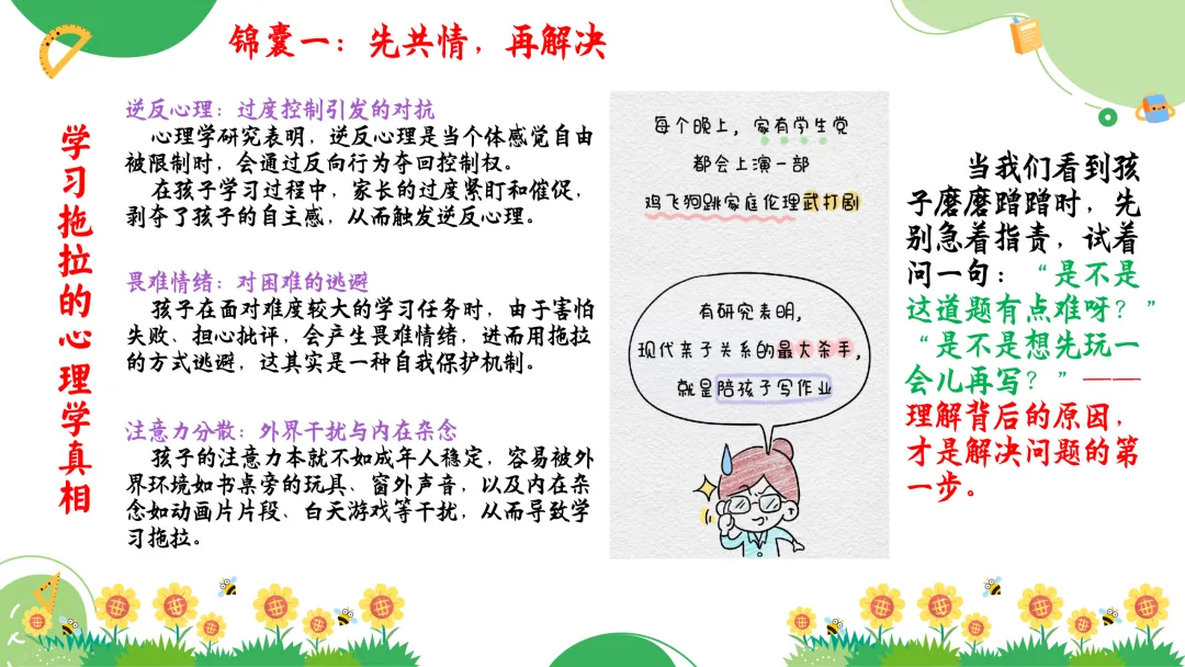 第三部分解读二年级孩子的心理和学习特点,针对学习拖拉等问题给出实用解决锦囊,让家长懂孩子、会引导;