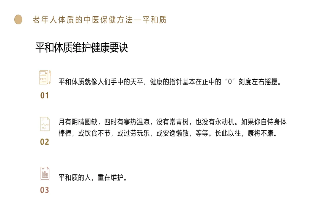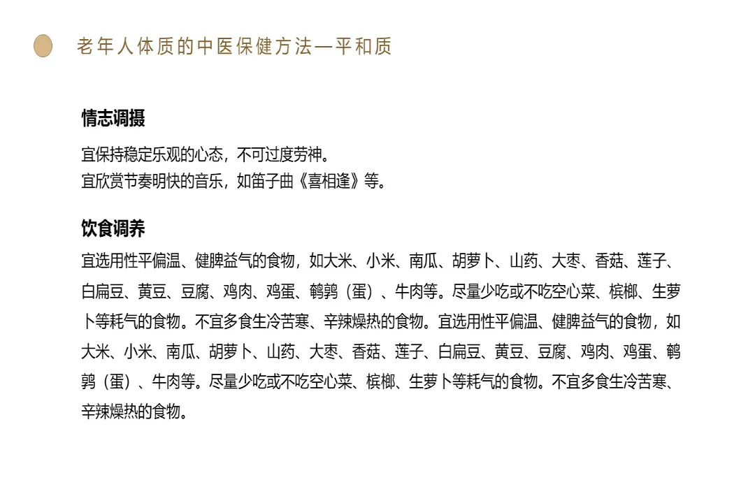 🍎内容:老年人体质的中医保健方法-医护PPT模版📅页数:共50页,无水印可二次编辑🌲目录:01 老年人体质的中医保健方法—平和质02 老年人体质的中医保健方法—气虚质03 老年人体质的中医保健方法—阳虚质04 老年人体质的中医保健方法—阴虚质05 老年人体质的中医保健方法—痰湿质06 老年人体质的中医保健方法—湿热质07 老年人体质的中医保健方法—血瘀质08 老年人体质的中医保健方法—气郁质09 老年人体质的中医保健方法—特禀质