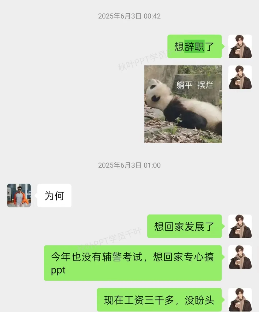 因此,我萌生了裸辞回家专心搞PPT的想法。