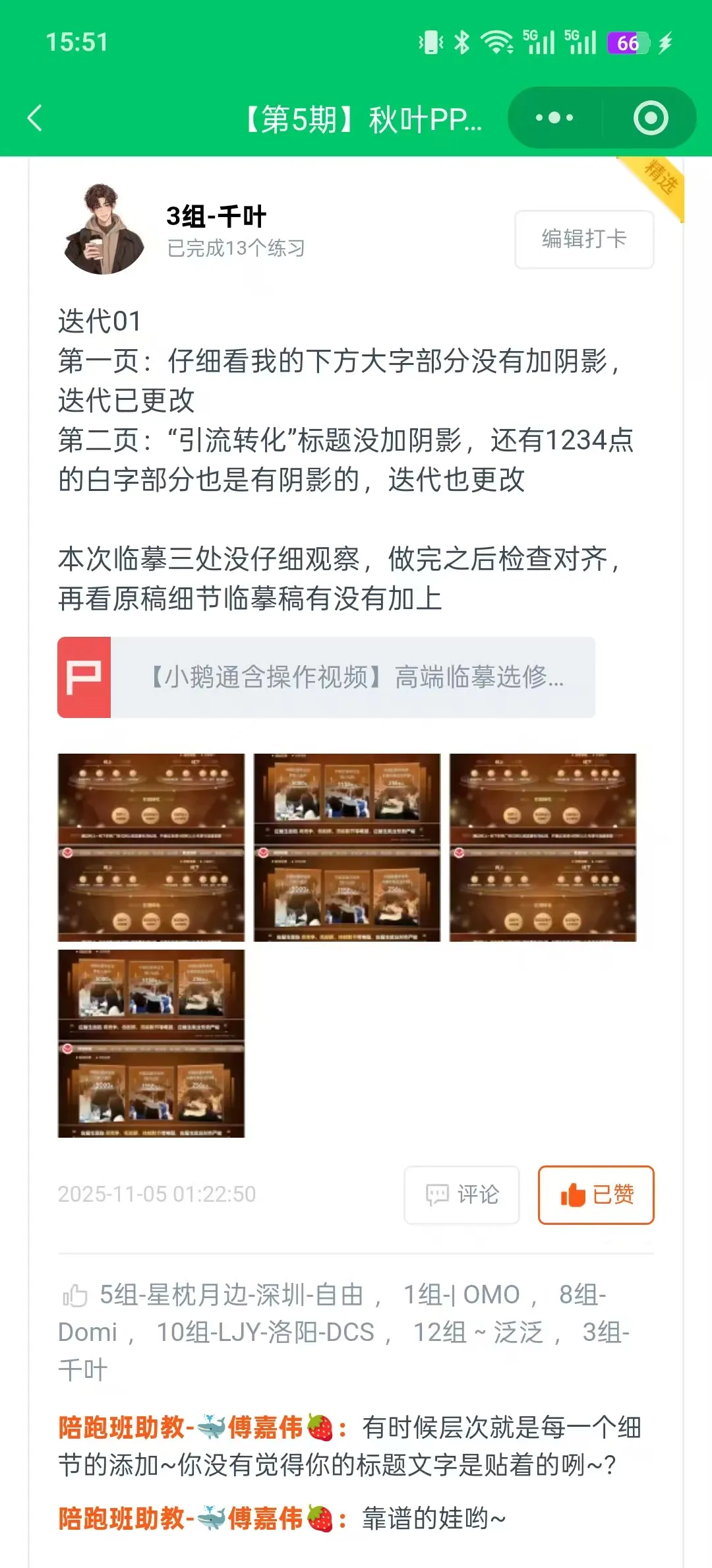 我在群里帮同学们解决问题,还给同学们的作业进行点评、指导、内容加餐 ↓