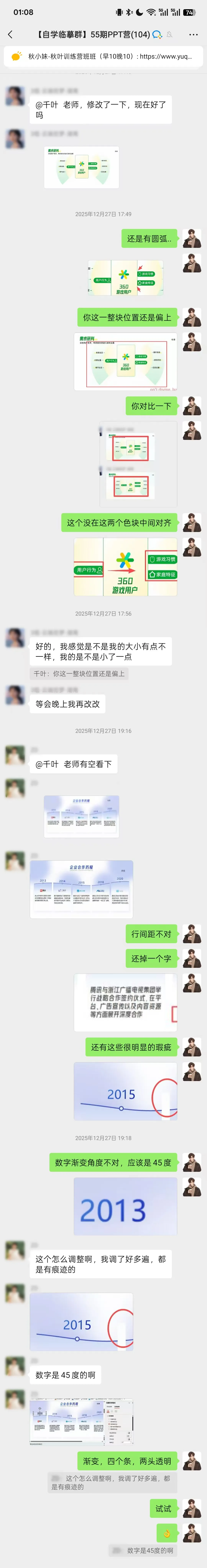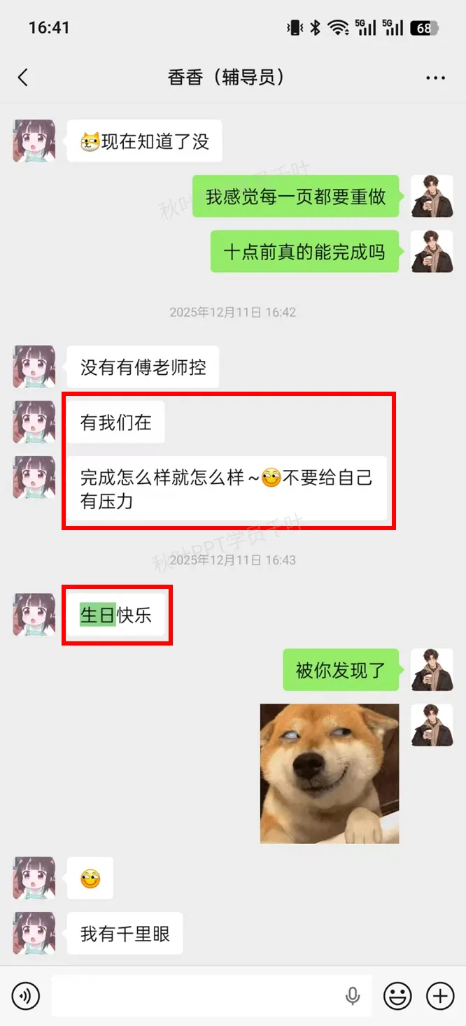 还有超级暖心的辅导员@香香,做PPT订单有压力的时候总会鼓励我,甚至会默默关注学员,就连我偷偷过生日都被发现了!