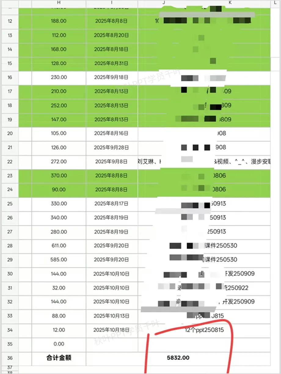 粗略统计了下,在训练营学习期间,我就靠PPT接单赚到了5832元 ↓