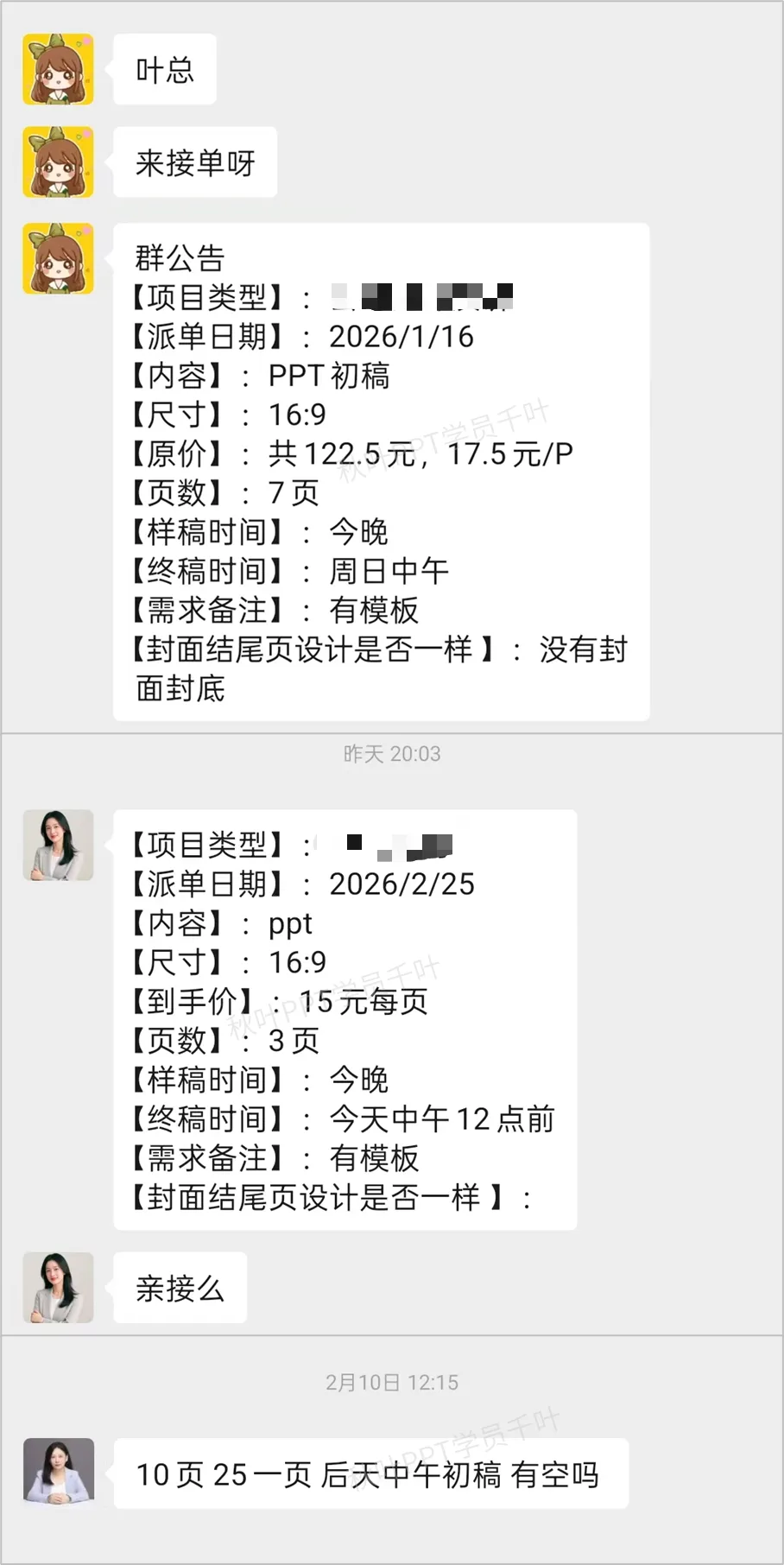 接单过程中,我还遇到我的好搭档@晓佳 ,佩服她的沟通能力、多线程处理能力,太强了。