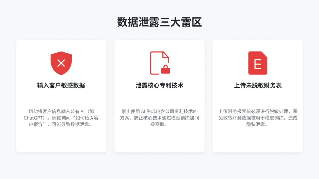 避开数据泄露三大雷区:不输入客户敏感数据、不泄露公司核心专利技术、不上传未脱敏的财务报表;