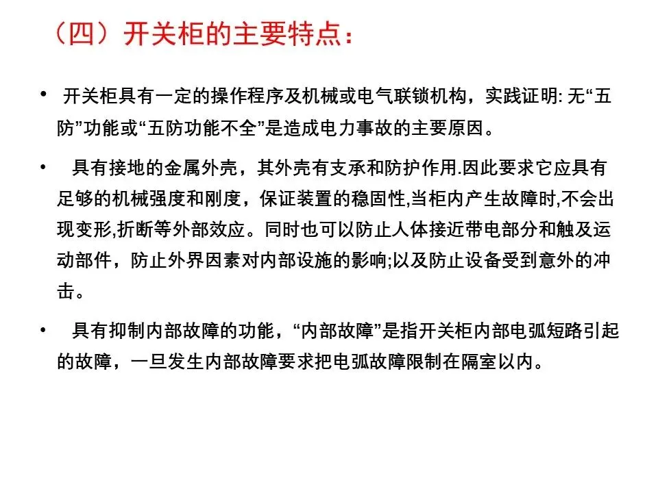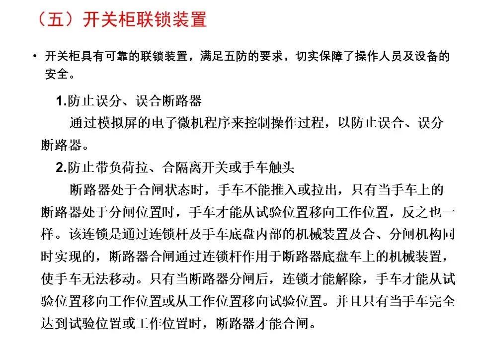 •开关柜具有一定的操作程序及机械或电气联锁机构,实践证明: 无“五防”功能或“五防功能不全”是造成电力事故的主要原因。