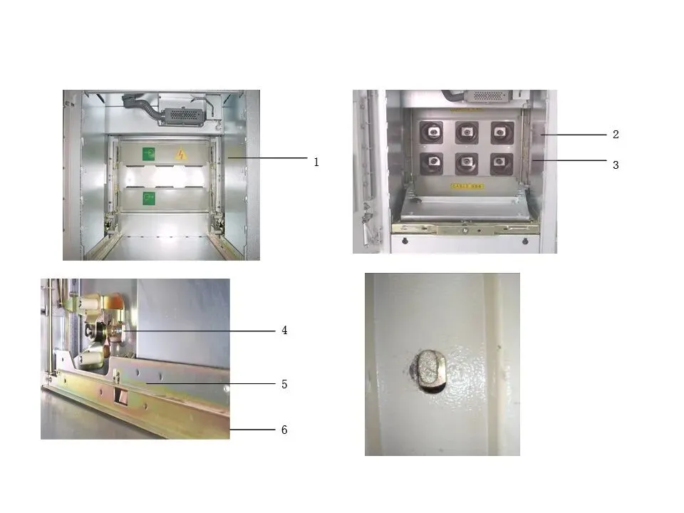 开关柜被隔板分成手车室、母线室、电缆室和继电器仪表室,每一单元均良好接地。