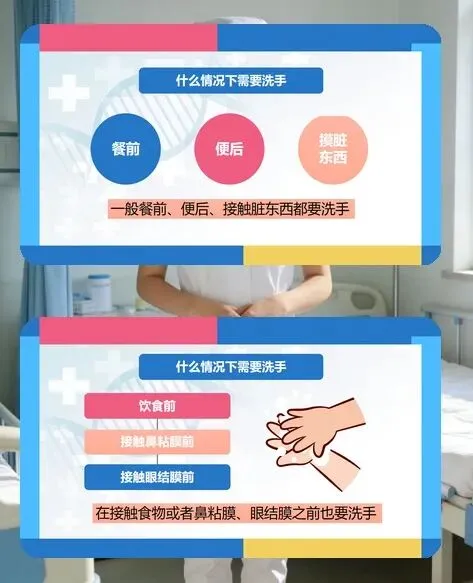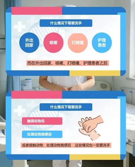 首先得清楚,什么时候该洗手,这是做好卫生防护的第一步。餐前便后、触摸脏东西后是基础,接触食物、鼻粘膜、眼结膜这些黏膜部位前必须洗手;外出回家、咳嗽打喷嚏后、护理患者后,手上容易沾染病菌,也得及时洗;还有触摸动物、处理动物粪便后,也一定要认真洗手,别让病菌有可乘之机。