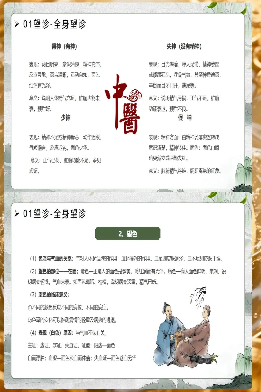在临床实践中,望诊需要结合患者的具体情况进行综合分析。例如,面色苍白可能是气血不足的表现,面色潮红可能是热证的表现;舌质淡白可能是气血不足的表现,舌质红绛可能是热证的表现;舌苔薄白可能是正常舌苔或寒证的表现,舌苔黄厚可能是热证的表现。通过望诊,医生可以初步了解患者的病情,为进一步的诊断和治疗提供依据。