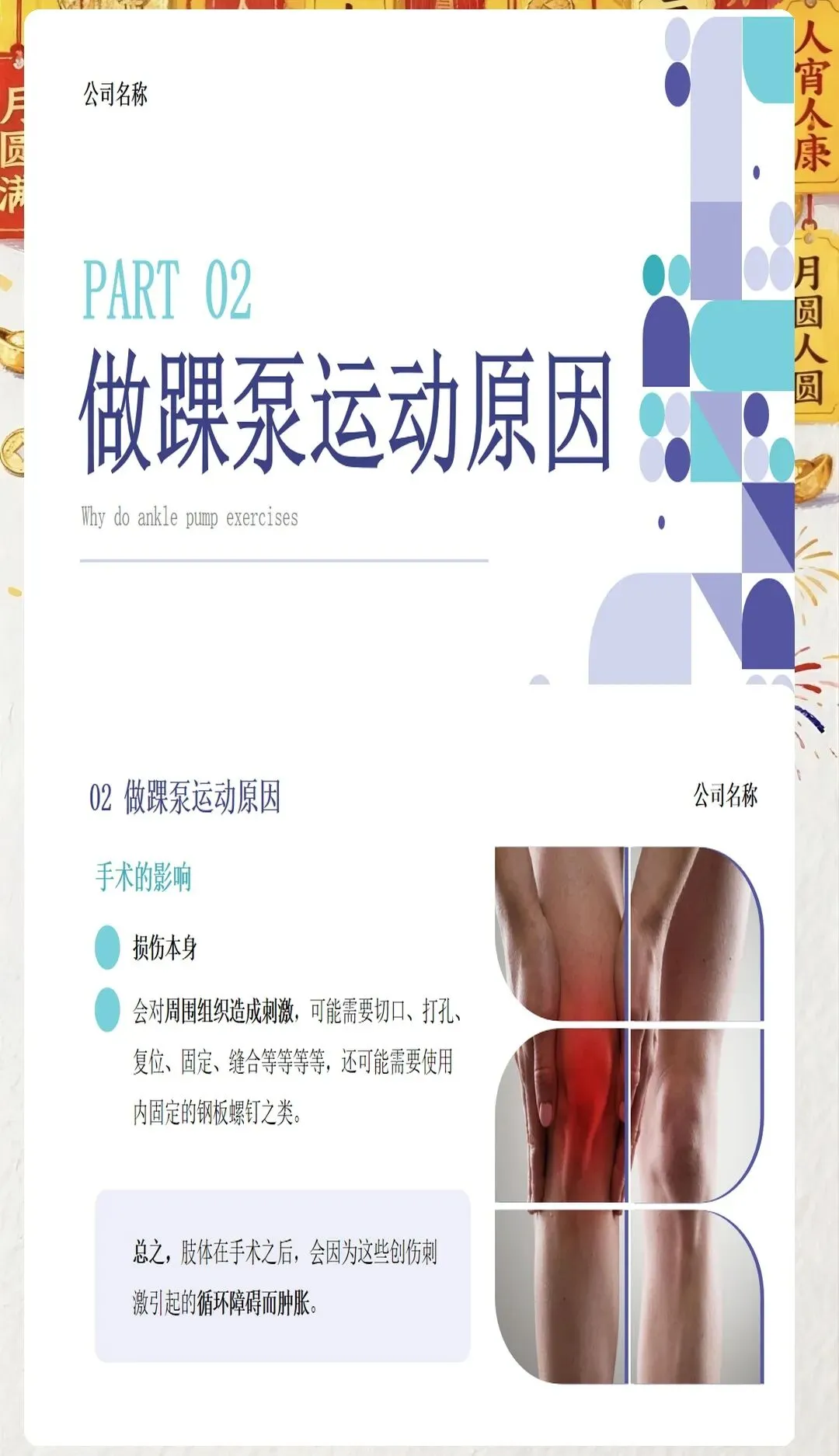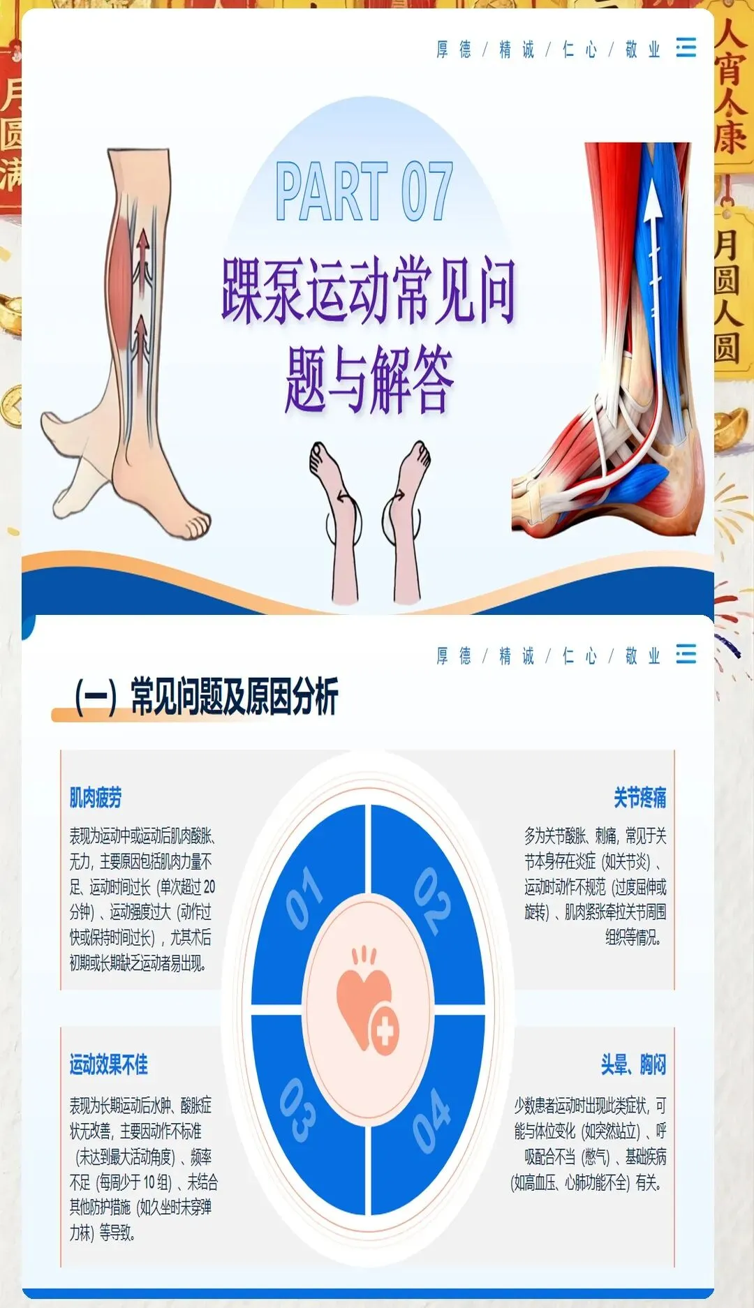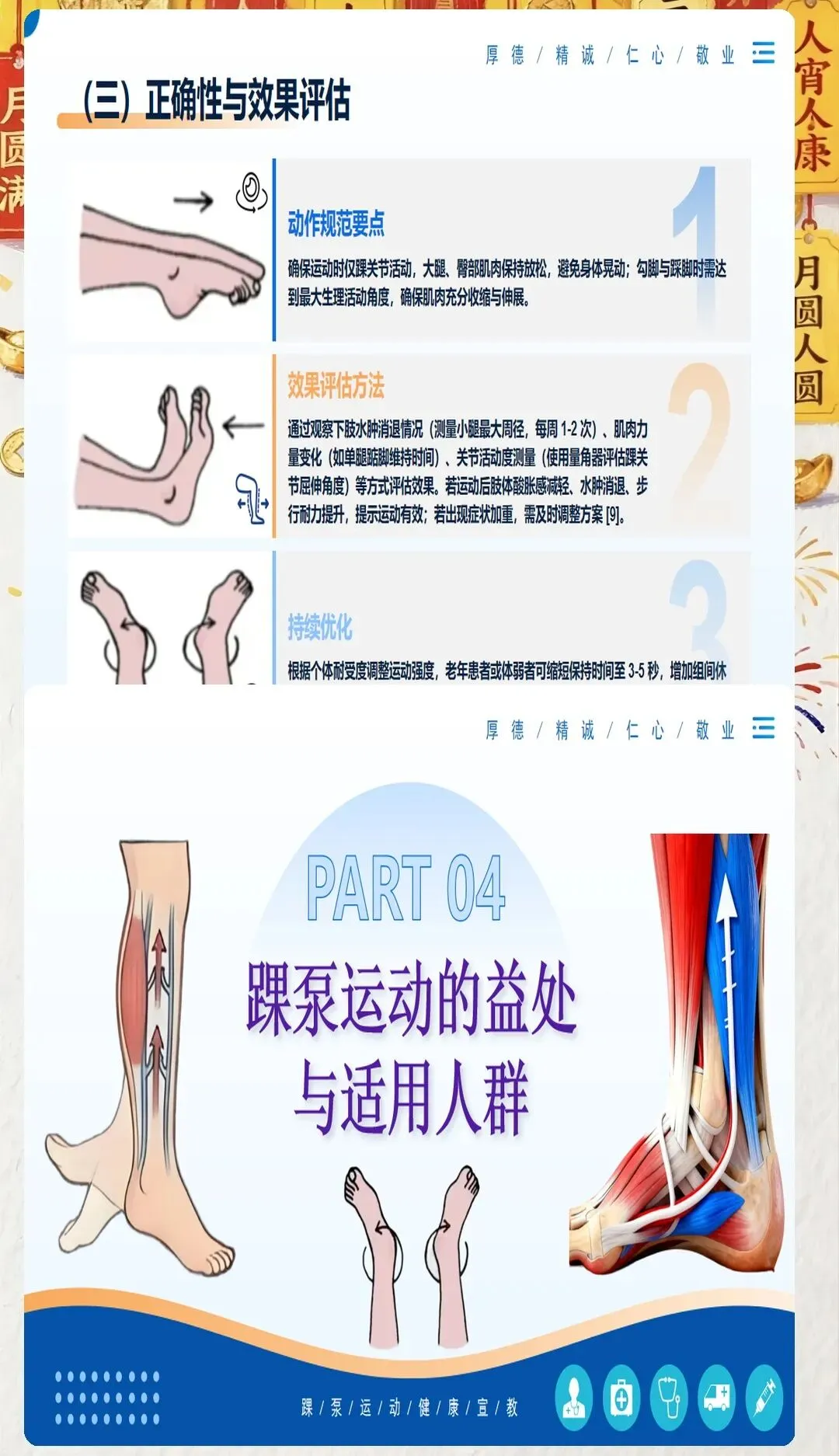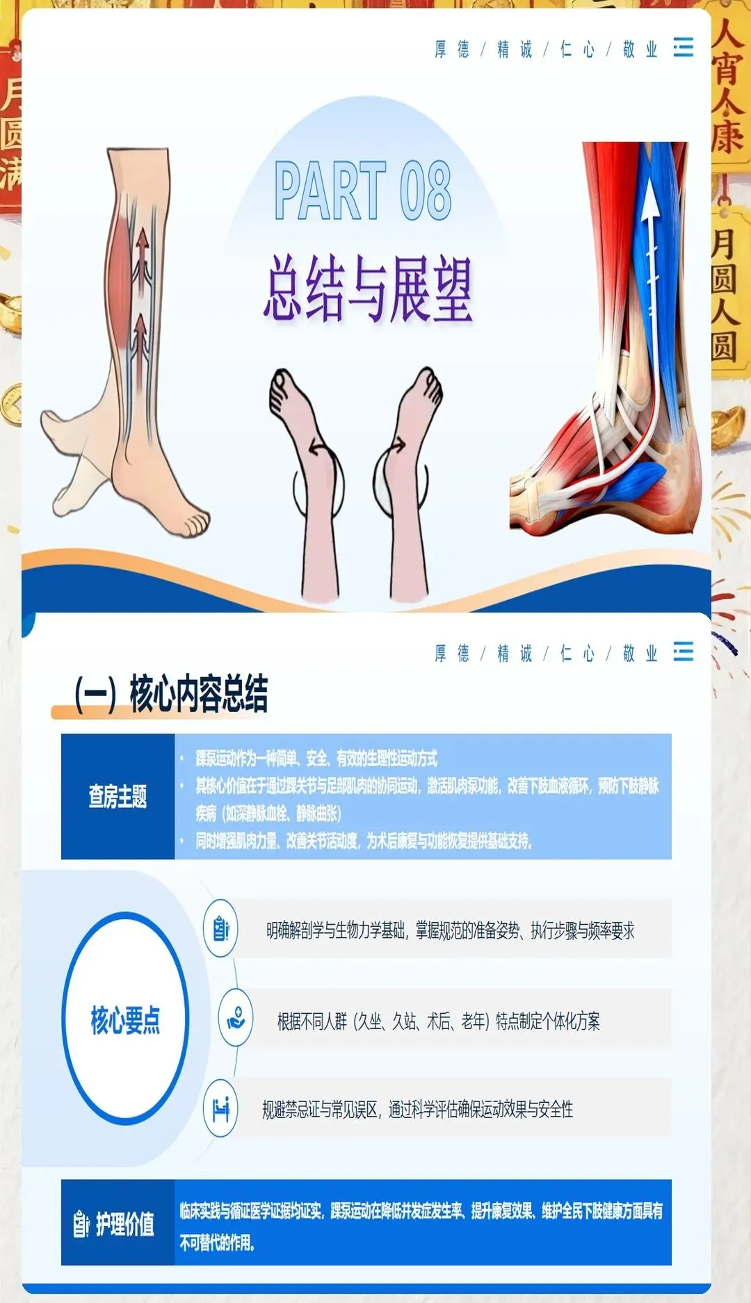 在临床工作中,我们常常会遇到一些患者因为术后长期卧床、肢体活动受限等原因,出现下肢肿胀、疼痛等不适症状,甚至引发深静脉血栓这一严重并发症。深静脉血栓一旦脱落,可能会随血液流动堵塞肺动脉,导致肺栓塞,严重威胁患者的生命安全。因此,预防深静脉血栓的发生,是医护工作中至关重要的一环。而踝泵运动,作为一种简单易行、效果显著的预防方法,值得我们每一位医护人员向患者进行推广和宣教。