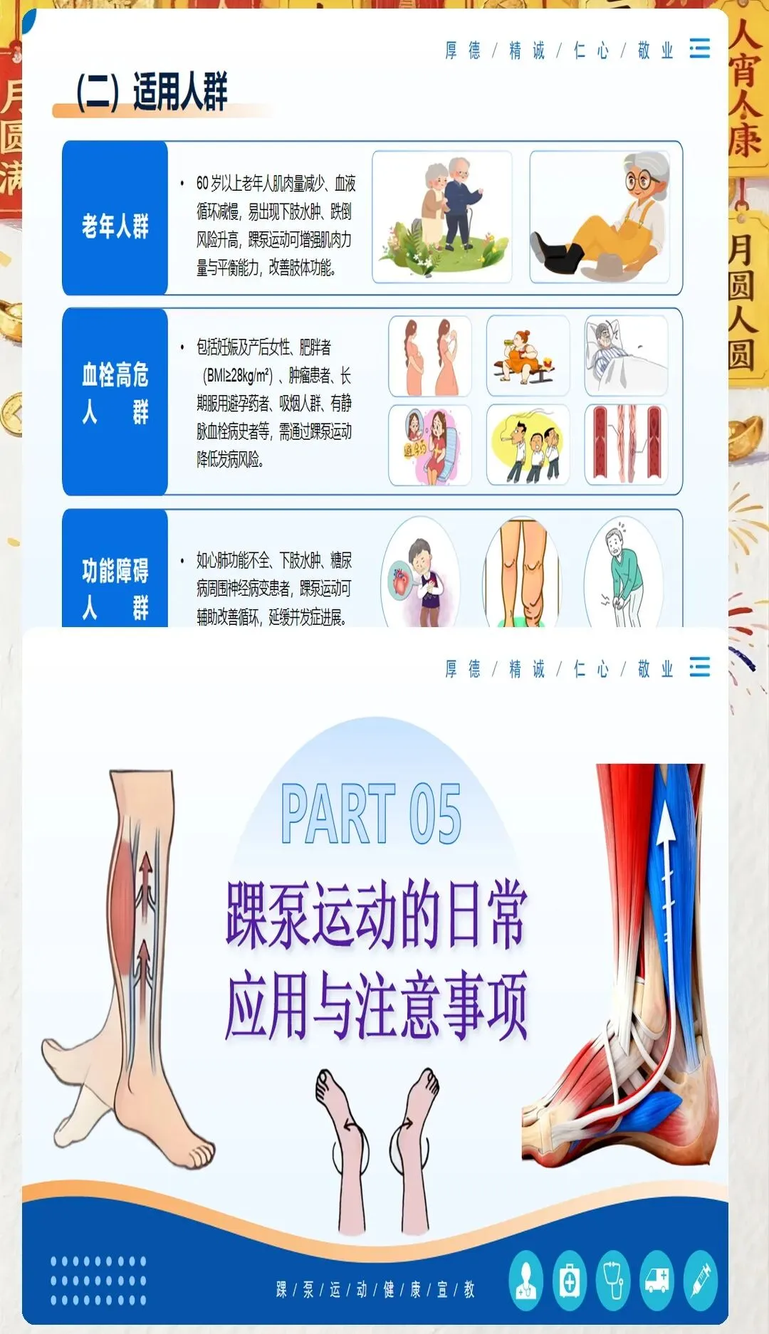 术后患者:尤其是下肢手术、腹部手术等术后需要长期卧床的患者,进行踝泵运动可以有效预防深静脉血栓的发生。