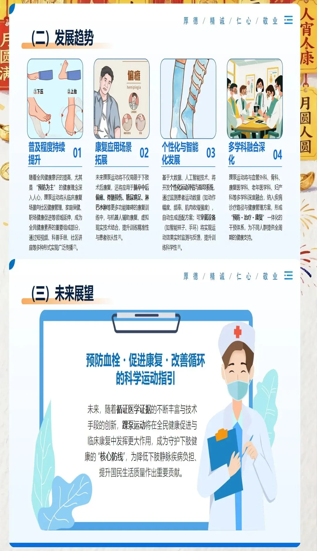 预防深静脉血栓:深静脉血栓的形成与血液高凝状态、静脉血流缓慢和血管壁损伤等因素密切相关。踝泵运动可以有效改善下肢静脉血流缓慢的问题,减少血液在下肢静脉内的淤积,降低深静脉血栓的发生几率。