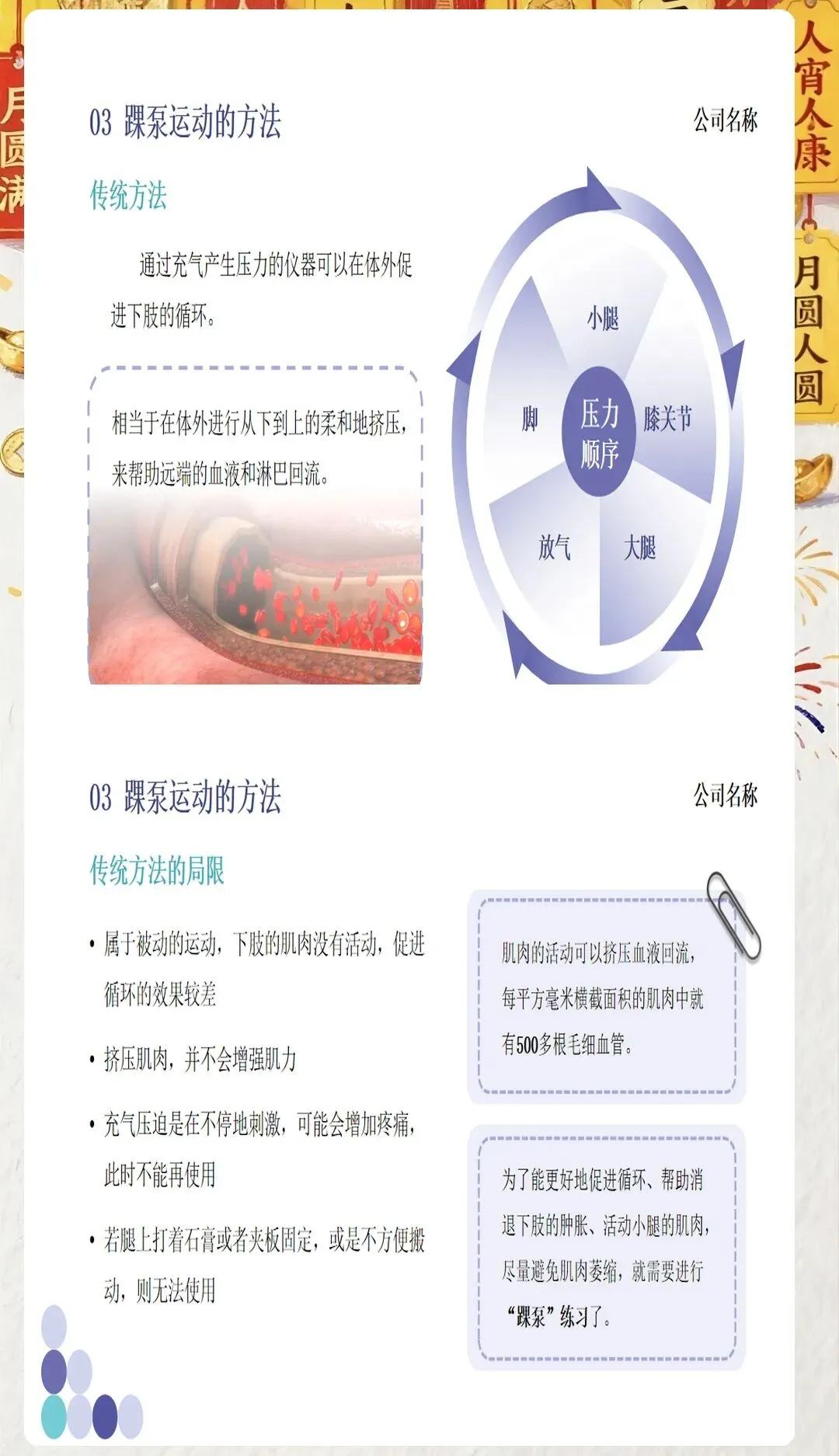 促进血液循环:当我们进行踝泵运动时,小腿肌肉的收缩和舒张会像“肌肉泵”一样,将下肢静脉内的血液挤压回心脏,增加下肢静脉的回流速度,减少血液在静脉内的停留时间,从而降低血液凝固的风险。