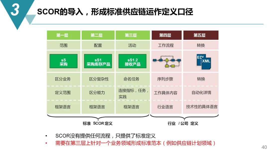 流程的标准化则依赖框架性工具的导入。SCOR模型提供了一套统一的供应链定义语言和绩效指标,但它不是现成的流程手册。需要通过“教练式”项目,在一个业务单元内试点,将战略目标分解为具体的绩效指标,再关联到流程、最佳实践和人员能力。这样培养出的内部团队,才能持续推动供应链的自我进化。