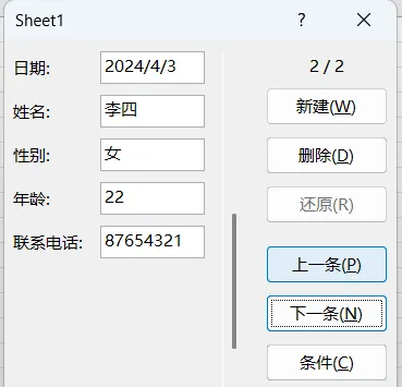 注意:鼠标需要选中整个第二行(表头),再依次点击alt+d+o,才能出现录入页面。(若选择表头中的某一个,后面录入时看不到表头信息。)2.按Enter键,实现下一行的输入,也可点击右侧的新建。3.上一条/下一条:对应表格的上一行和下一行信息。(核查方便)