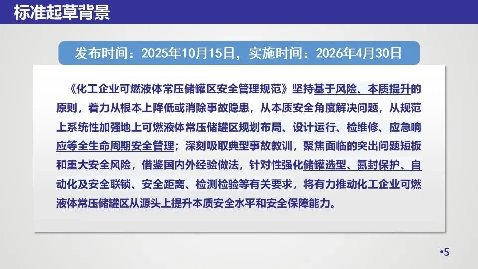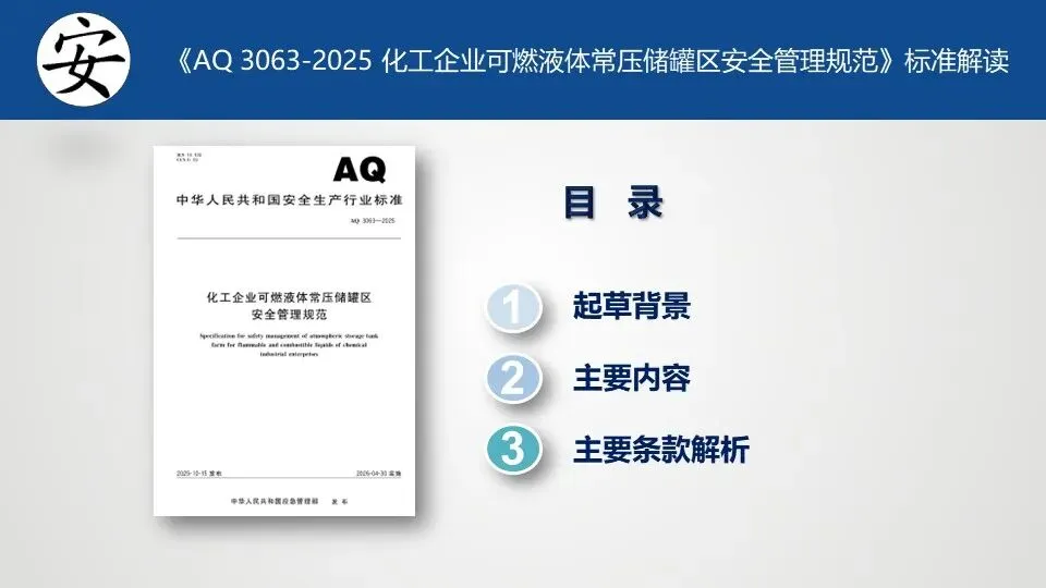 【ppt】《AQ 3063-2025 化工企业可燃液体常压储罐区安全管理规范》标准解读(91页)
