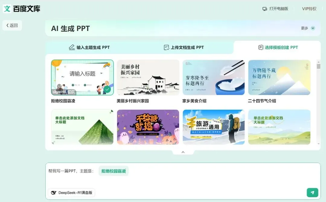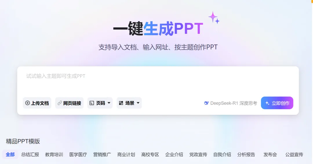 可以直接输入主题生成PPT再修改内容,也可以提前编写一个文档上传生成PPT,有较高需求的可以选一个模版,然后自己填充内容,我一般是选模版填内容,因为这样的话比较可控,而且好修改。