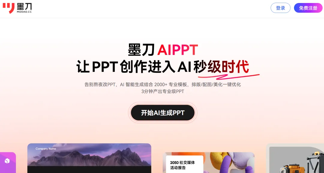 是一款国产的 AIPPT 软件, 支持AI一键生成PPT、文档生成PPT、思维导图生成PPT、Markdown生成PPT、文字转PPT、文件转PPT、同时还有模版替换和美化功能。