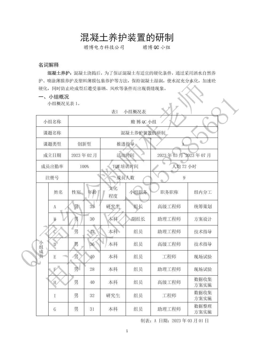 电力【电力优秀QC成果PPT】混凝土养护装置的研制
