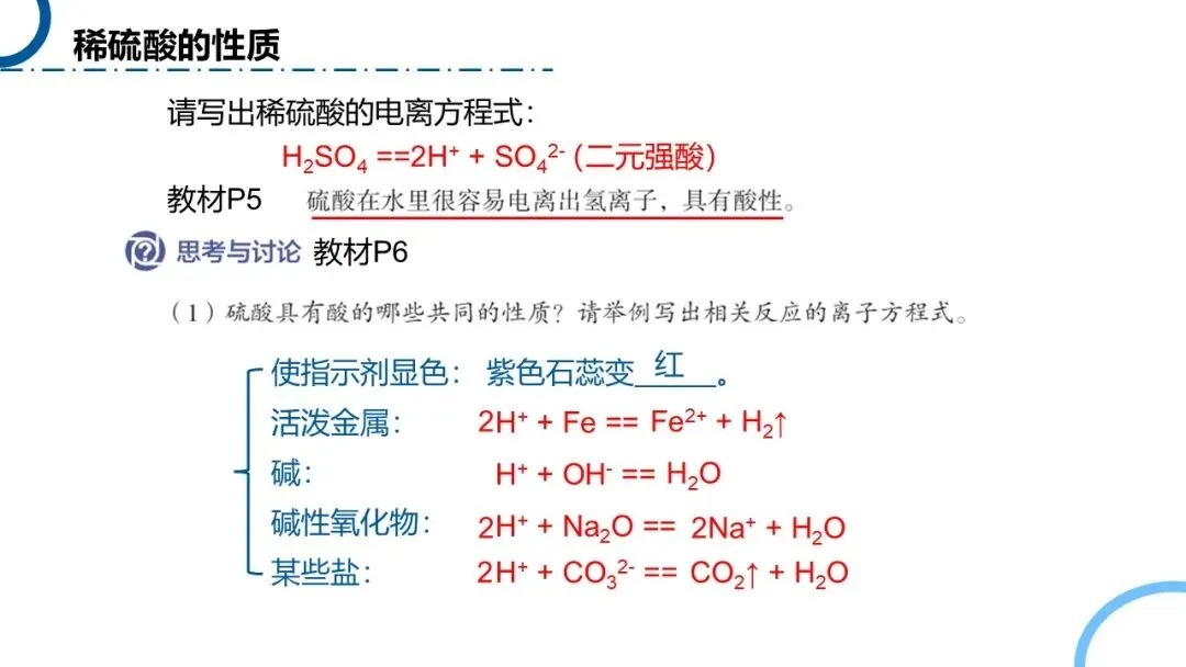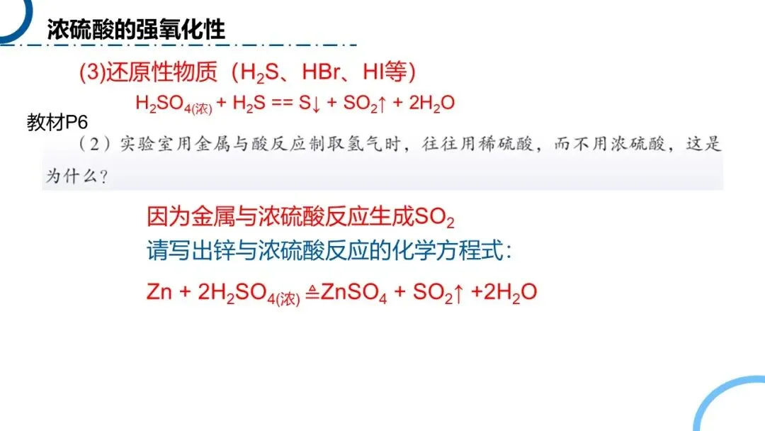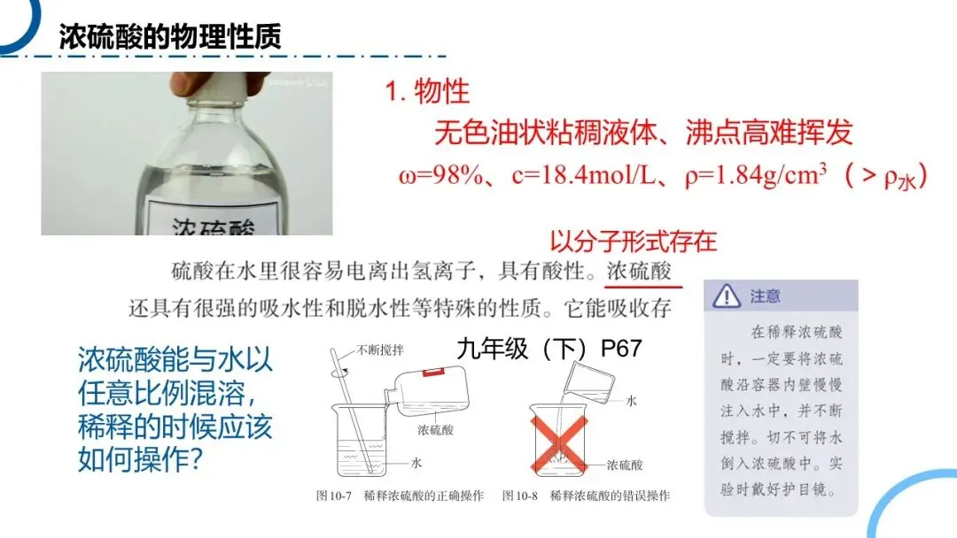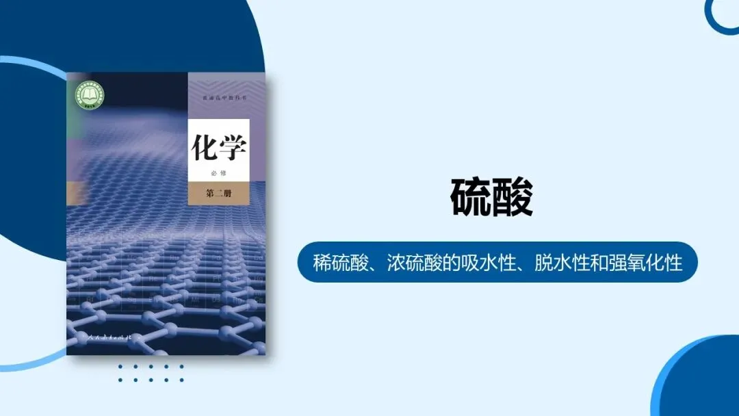 这一节是学习硫酸,稀硫酸在初中已接触过,回顾酸的通性,之后重点认识浓硫酸的性质,包括物理性质、吸水性、脱水性和强氧化性