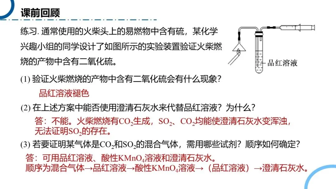 回顾前面学习的二氧化硫的内容,为后面铺垫。