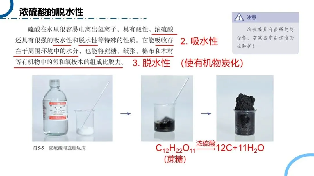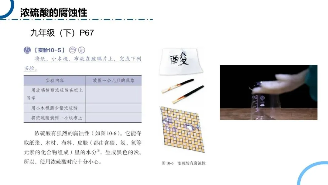 引用初中课本中浓硫酸的内容,理解浓硫酸的腐蚀性。
