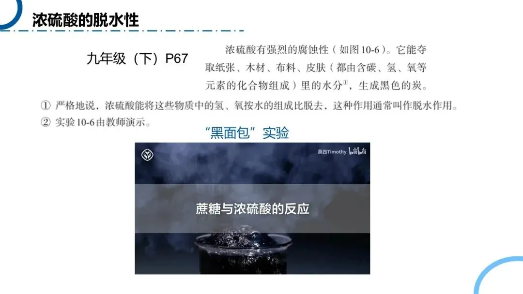脱水性在初中也有介绍,这里补充观看“黑面包”实验视频。