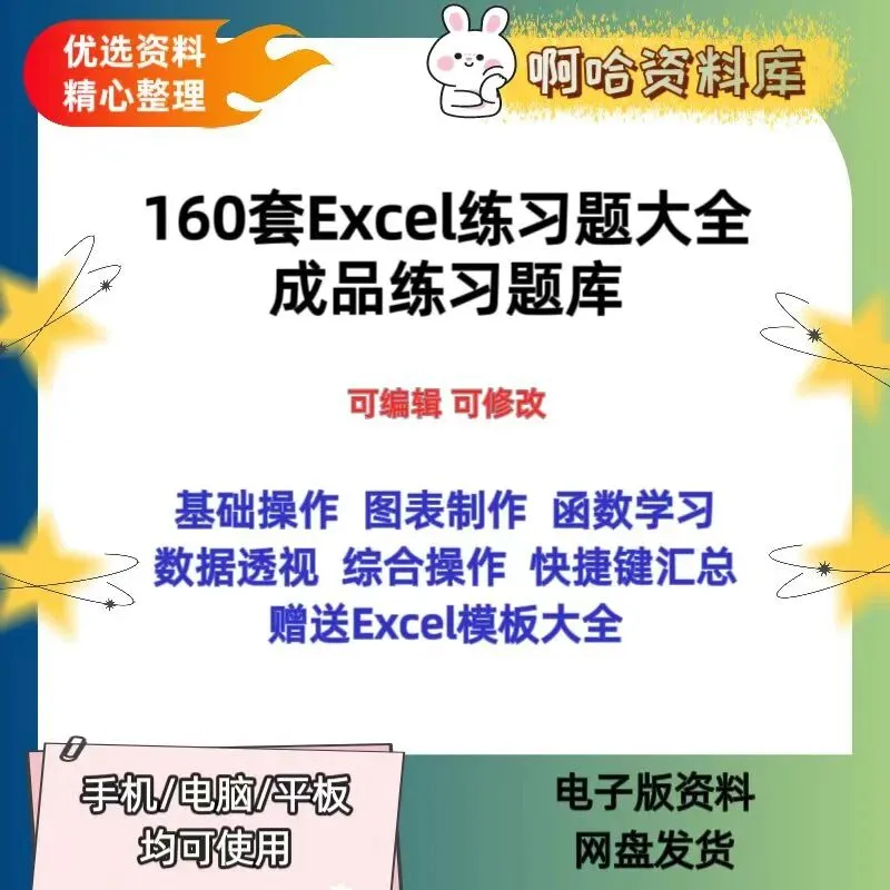 >Excel学习必备!160套成品练习题题库,零基础到精通,函数/表格/公式练习全覆盖