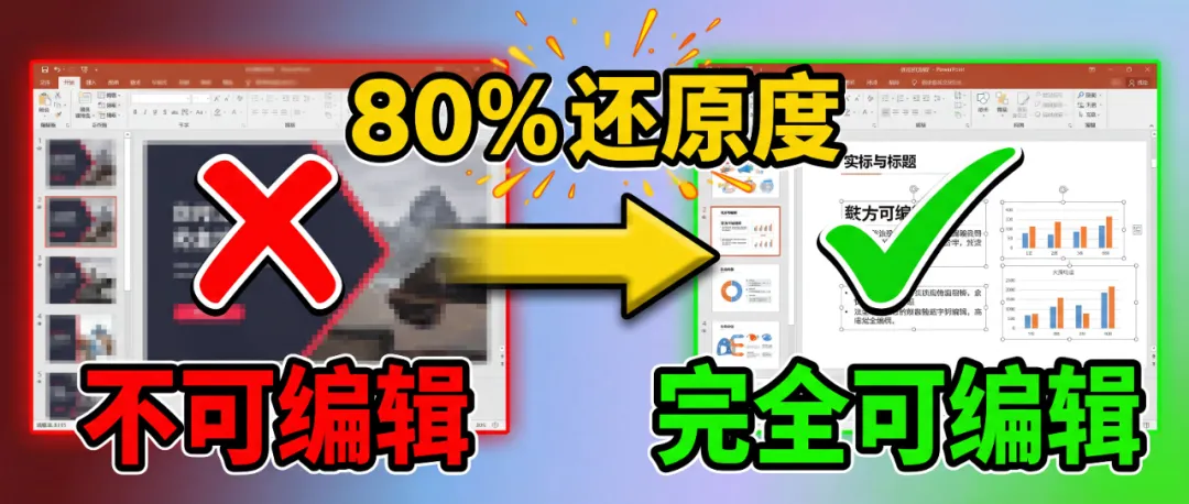市面上没有一个工具能做到100%原样复刻,但80%的还原度+20%的人工调整,已经能让你省下重做PPT的90%时间。
