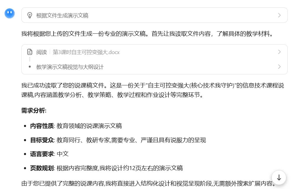 说起AI生成PPT,Kimi的表现大家都有所了解,在2025年,我身边的朋友几乎都是使用KImi来生成PPT。现在豆包也上线了一键生成PPT的功能,今天我们拿一份说课稿当素材,让Kimi和豆包各做一份PPT,做个对比测评,看看两款AI的表现如何。