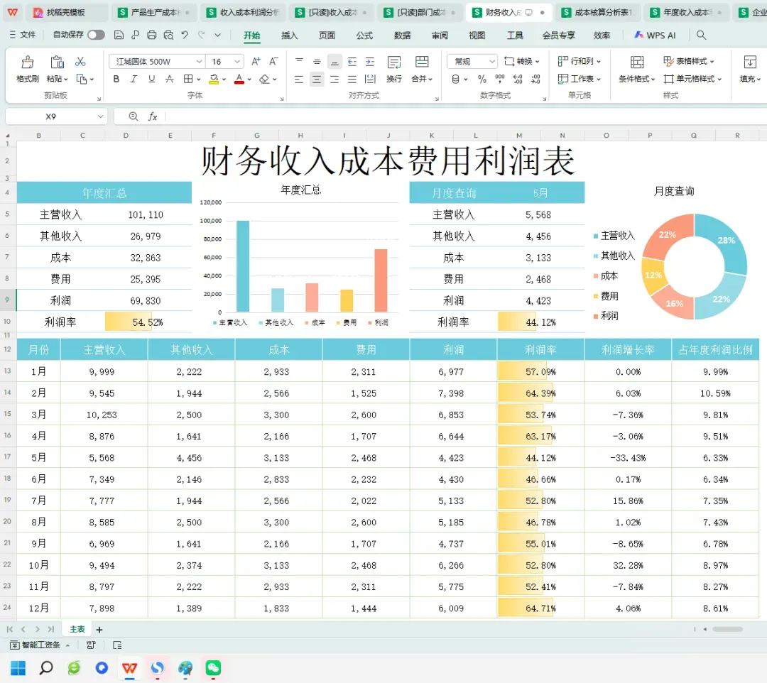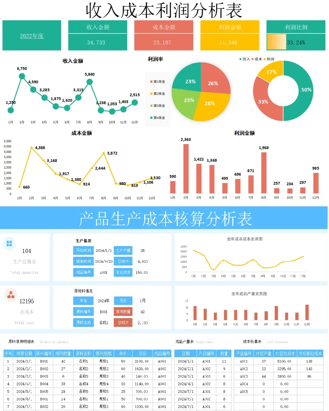 因此,小编在此整理了这套可视化成本核算分析表模板,套用自动进行成本核算分析。具体见下文展示。