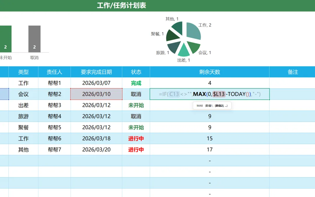 “剩余天数”根据当前日期与设置的要求完成日期自动计算,无需手动更新。