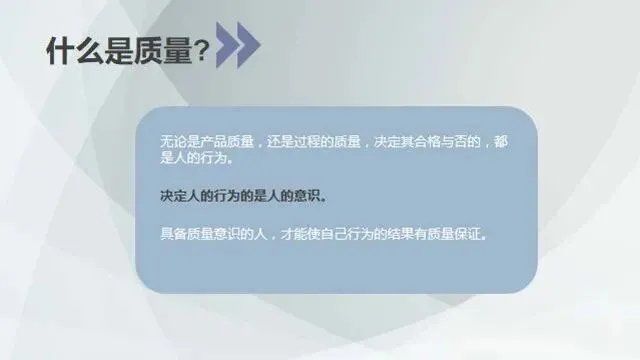 无论是产品质量,还是过程的质量,决定其合格与否的,都是人的行为。