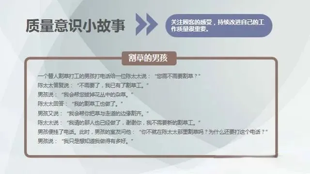 具备质量意识的人,才能使自己行为的结果有质量保证。
