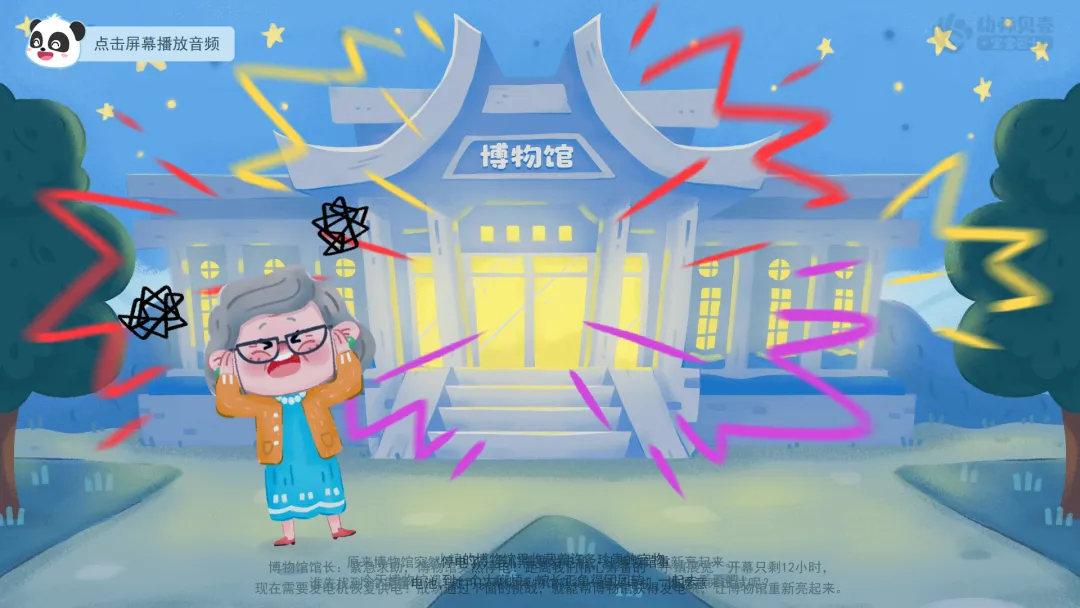 ——原来博物馆突然停电了,我们需要发电机,让博物馆重新亮起来。谁先找到3个能量电池,就可以帮助博物馆获得一台发电机,谁愿意来试试呢?