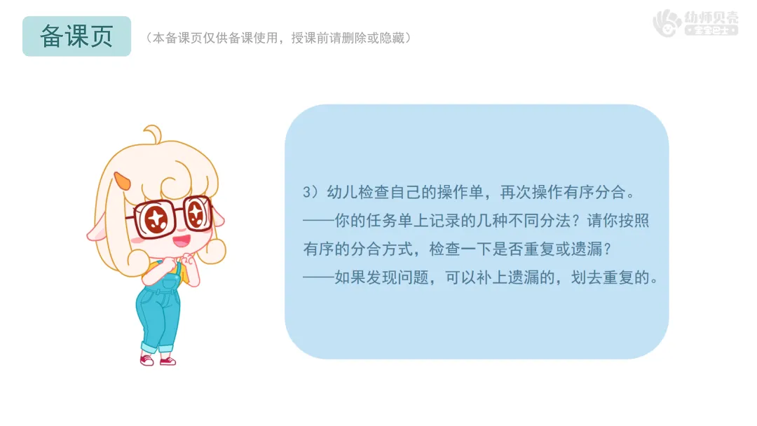 3)幼儿检查自己的操作单,再次操作有序分合。