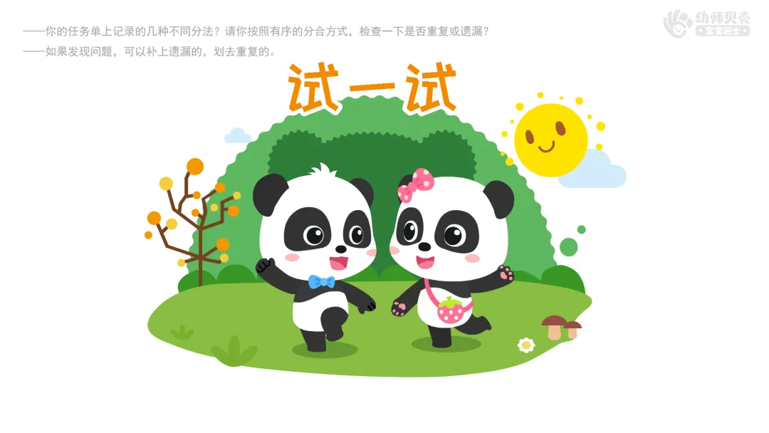 ——你的任务单上记录的几种不同分法?请你按照有序的分合方式,检查一下是否重复或遗漏?