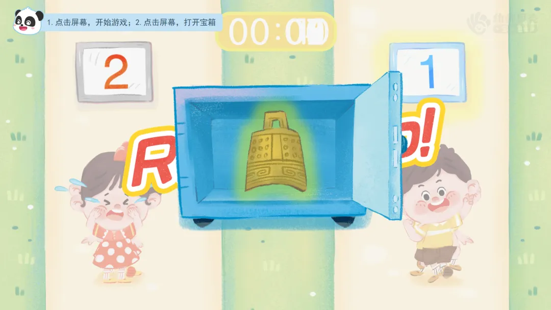 ——记住哦,当音乐停止,你们需要做出选择!选择正确的一方,可以打开宝箱,获得宝物。