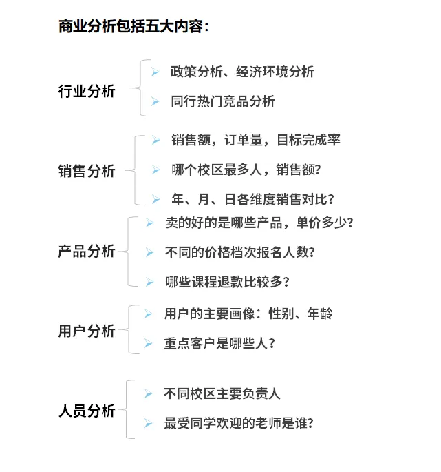 商业分析方法还包括其他一些延展性内容,如竞品分析,这里就不做详细延展。我们主要抓住以上的5大方面内容,如果某些部分没有数据或者不用分析,可以适当省略掉。