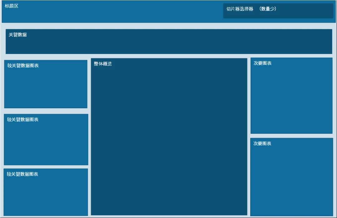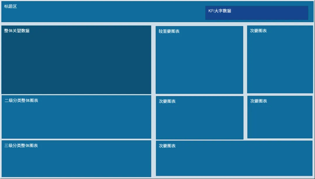 布局2:关键数据放置在中间大图,重点KPI放在第一行。